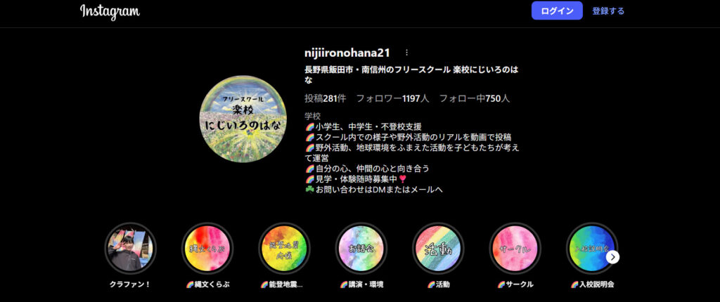 | 公式サイト | 楽校にじいろのはな Instagram |