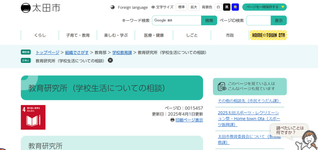 | 公式サイト | 太田市ホームページ(学校教育課) |