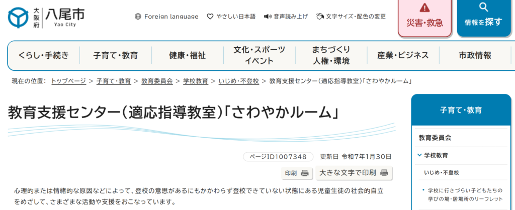 | 公式サイト | 教育支援センター(適応指導教室)「さわやかルーム」 |